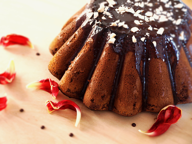 W czasie gdy babka stygnie przygotować polewę. Wszystkie składniki podgrzać i wymieszać do połączenia. Polać babkę i udekorować.