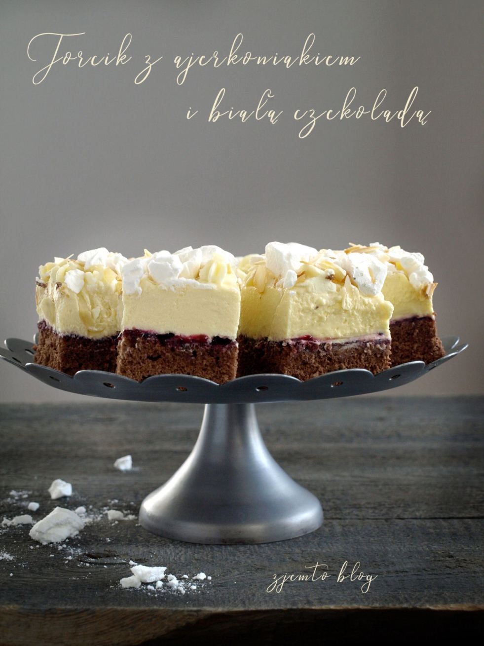 Torcik ajerkoniakowy z białą czekoladą