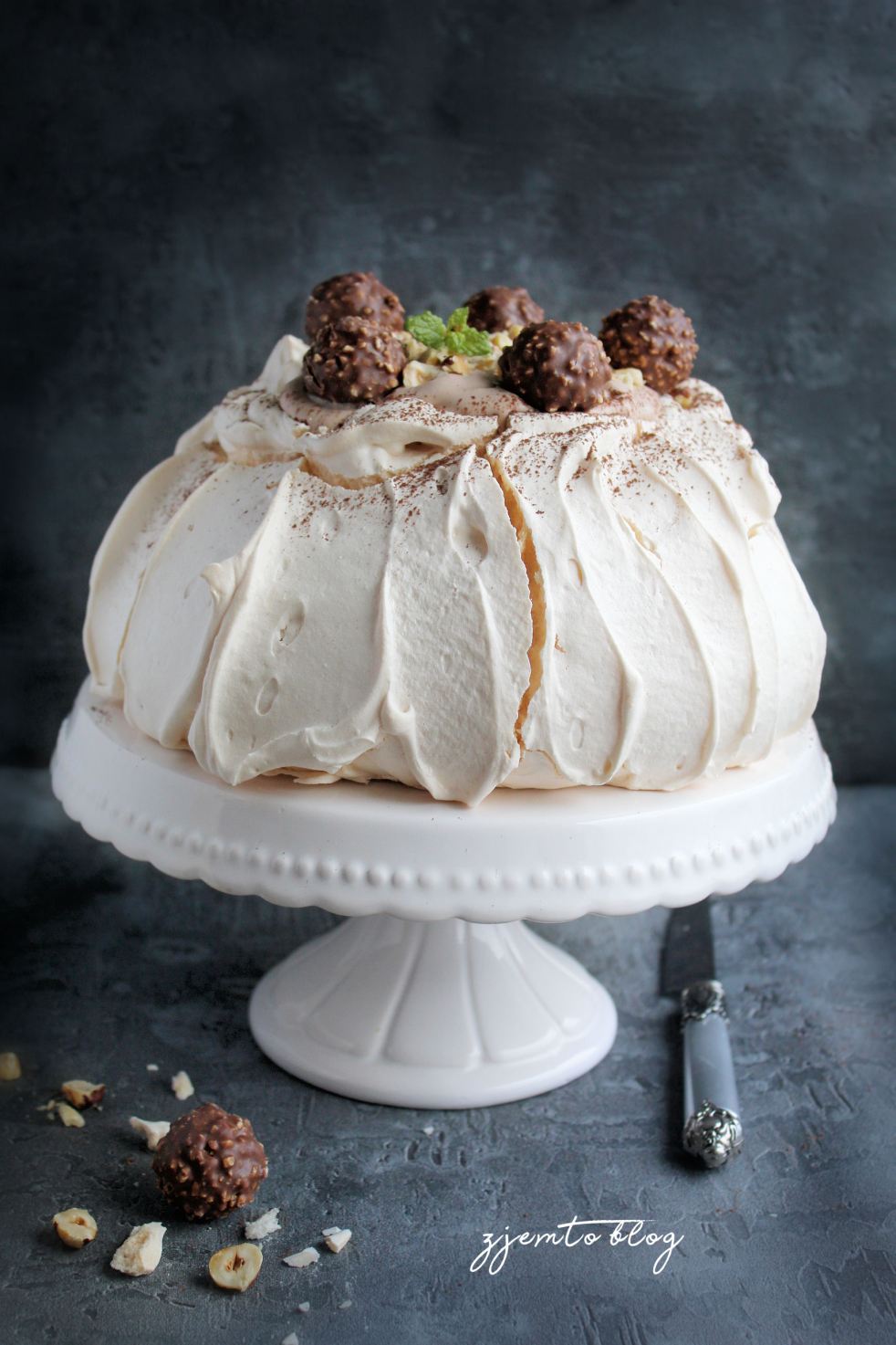 Cudownie chrupka beza z piankowym wnętrzem i kremem o smaku pralinek orzechowych.