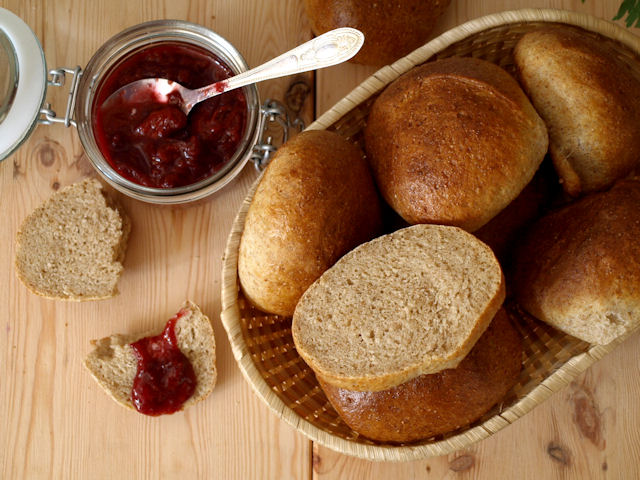 Miło jest obudzić się rano i poczuć zapach świeżych bułeczek, a kiedy jeszcze są to bułeczki zrobione własnoręcznie... Ponieważ natknęłam się w sklepie na mieszankę mąk ' Graham orkiszowy", postanowiłam upiec domowe grahamki. Przygotowanie ciasta nie jest zbyt skomplikowane, to po porostu ciasto drożdżowe, za to istotne by było dobrze wyrobione i sprężyste. Bułeczki wychodzą… Czytaj dalej Grahamki