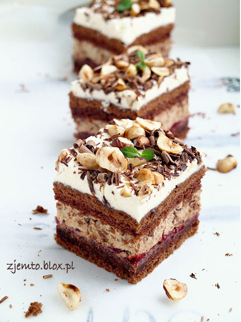 Nie ukrywam, że kategoria ciasta przekładane należy do moich ulubionych. Dziś dodaję do niej ciasto, które przypadnie do gustu smakoszom popularnych Michałków. Czekoladowe, wilgotne blaty, przełożone słodko-kwaśnym dżemem, masą orzechowo-kawową i bitą śmietaną. Całość zdobi posypka z orzechów laskowych i czekolady. Nam ciasto bardzo smakowało. Pięknie się prezentuje, świetnie kroi, a każdego dnia zyskuje na… Czytaj dalej Ciasto Michałek
