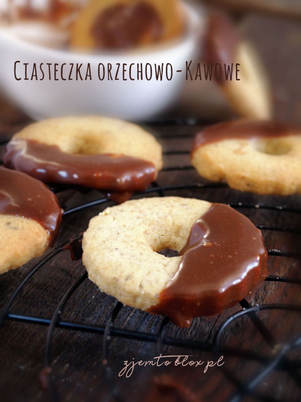 Kruche, delikatne, maślane ciasteczka z dodatkiem kawy i orzechów włoskich, zatopione w mlecznej czekoladzie