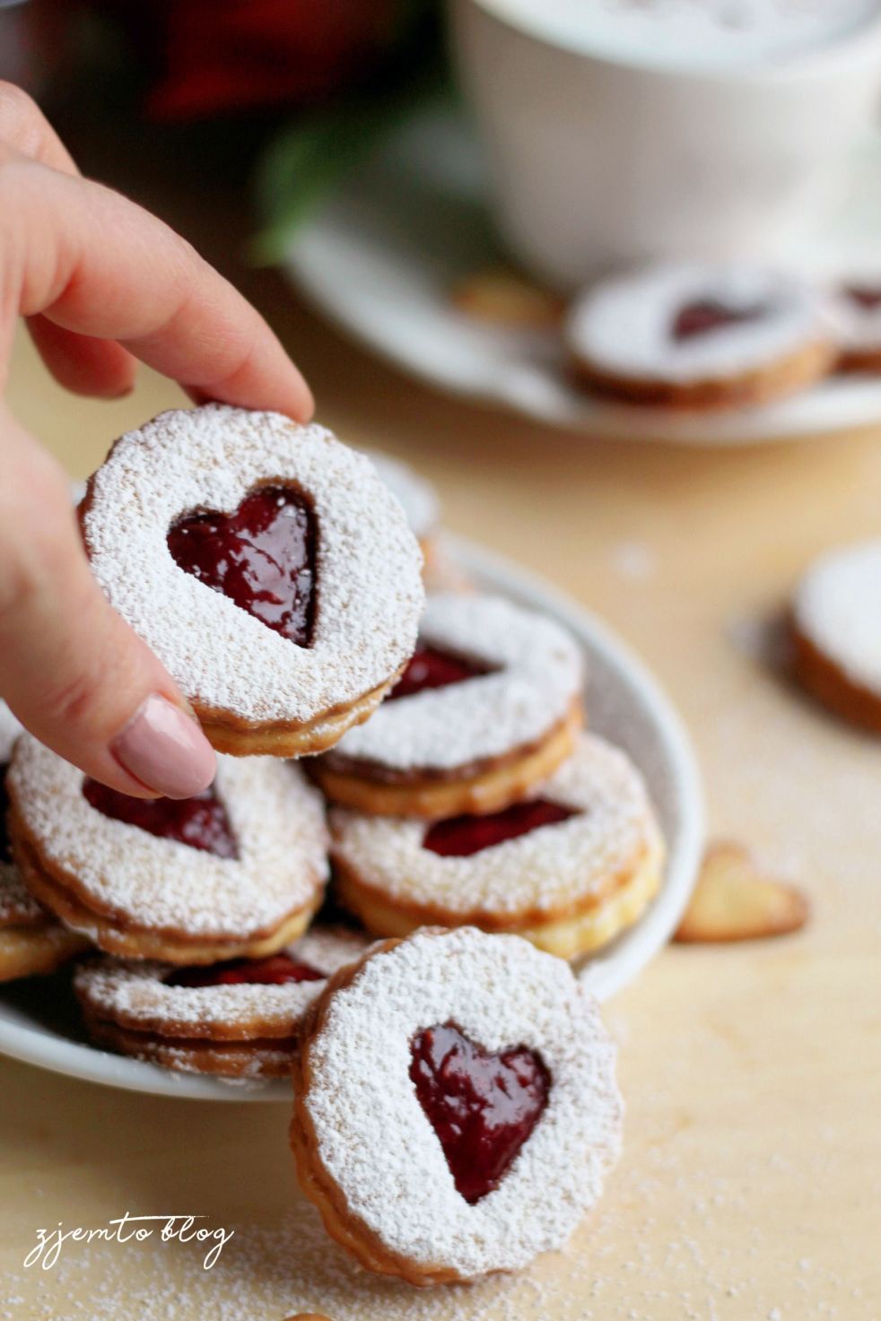 Kruche, maślane markizy walentynkowe. Najlepiej smakują przełożone kwaśną konfiturą domowej roboty lub kremem orzechowym typu Nutella.