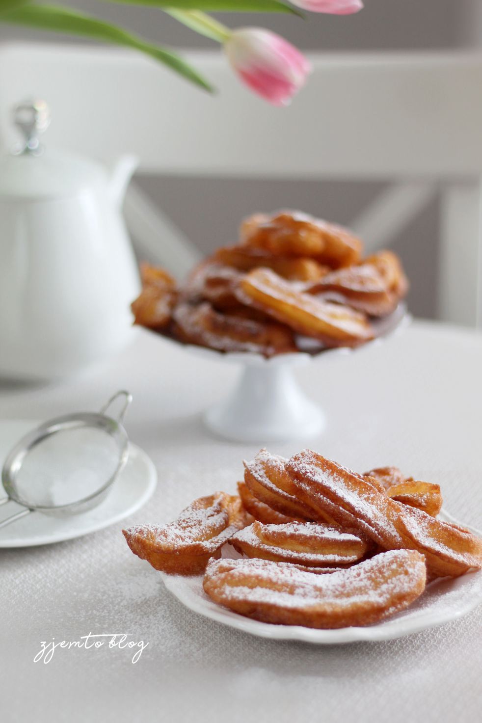 Tradycyjny hiszpański przysmak z ciasta parzonego smażony na gorącym oleju. Z zewnątrz chrupiący, a w środku przyjemnie miękki. Najlepiej smakuje ciepły, zatopiony w słodkim, aksamitnym sosie czekoladowym lub tylko oprószony cukrem pudrem. To świetna przekąska karnawałowa. Do dań fit na pewno nie należy, ale w czasie kiedy można sobie pozwolić na nieco rozpusty na pewno się sprawdzi.