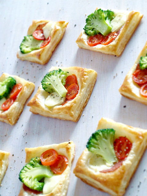 Brokuł, salami, ser pleśniowy i pomidorki koktajlowe, otulone ciastem francuskim. Całość oprószona świeżo mielonym pieprzem. Ekspresowa przekąska, która smakuje wybornie zarówno na ciepło, jak i na zimno. Polecam z sosem czosnkowym. Składniki: płat ciasta francuskiego 1 brokuł pomidorki koktajlowe ser pleśniowy (u mnie president) kilka plasterków salami ponadto 1 rozmącone białko Sposób wykonania: Brokuł pokroić… Czytaj dalej Brokuły w cieście francuskim