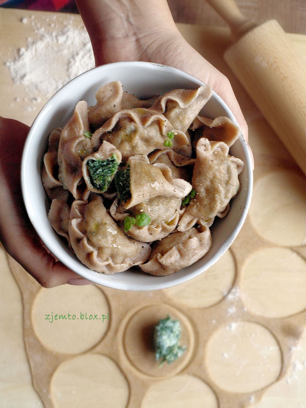 Pierogi orkiszowe ze szpinakiem i ricottą