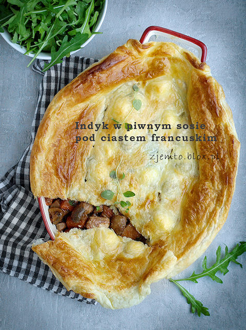 Delikatne, kruche kęski mięsa w sosie piwnym, a nad nim chrupiące ciasto francuskie. To danie wygląda i smakuje niesamowicie, dlatego polecam je Wam na uroczysty obiad lub kolację dla przyjaciół. Gulasz gotujemy na ciemnym piwie, a do marynaty i doprawienia używamy sosu sojowego. Wszystko po to, by nadać charakter i wyrazistość potrawie. Jeśli nie macie… Czytaj dalej Gulasz z indyka pod ciastem francuskim