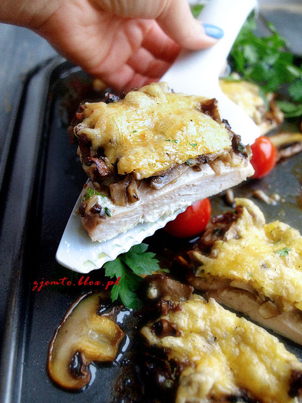 To jedno z moich ulubionych dań. Często przygotowuję je na spotkania z przyjaciółmi. Proste składniki, niewiele pracy a efekt przyjemnie zaskakujący - miękki, soczysty kawałek mięsa pod grzybowo-serowo kołderką. Składniki: podwójna pierś z kurczaka 500 g pieczarek 180 g sera żółtego mały pęczek szczypiorku 1 łyżka oleju 1 łyżka masła sól, pieprz majonez (lub wiórki… Czytaj dalej Zapiekany filet z pieczarkami
