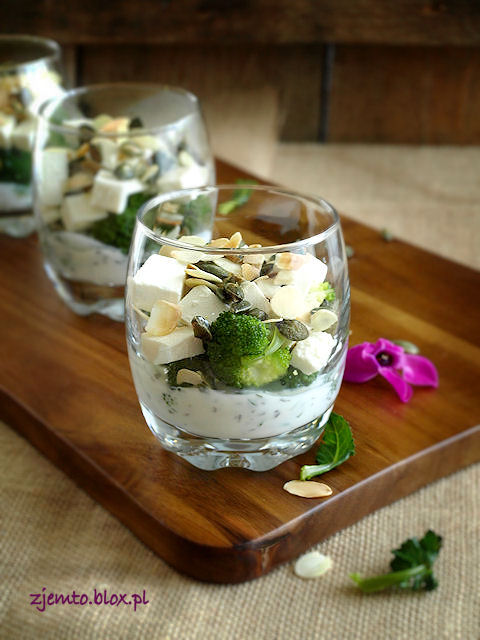 Bardzo prosta sałatka z brokułem, fetą, prażonymi pestkami z dyni i płatkami migdałów. Oczywiście wszystkie składniki można od razu wymieszać, ale dzięki ułożeniu warstwami, sałatka prezentuje się znacznie lepiej. Jeśli będziecie mieli niewielu gości, możecie też podać ją porcjami w szklankach. Wtedy wygląda zupełnie jak deser. Składniki: 1 brokuł kostka sera feta 100 g płatków… Czytaj dalej Warstwowa sałatka z brokułem