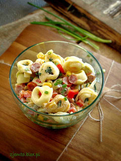 Ta sałatka gości u mnie od niedawna, ale bardzo przypadła mi do gustu. Jest wyrazista w smaku, zwłaszcza gdy użyjemy pikantnych kabanosów. Dzięki tortellini zaś bardzo treściwa i sycąca. Powinna smakować zarówno tym, którzy lubią makarony w sałatkach, jak i tym, którzy chcą w nich znaleźć "coś konkretnego". Z powodzeniem może zastąpić pełny posiłek, albo… Czytaj dalej Sałatka z tortellini i kabanosem