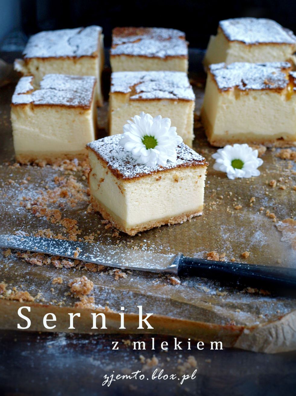 sernik z dodatkiem sporej ilości mleka i dziewięciu ubitych białek.