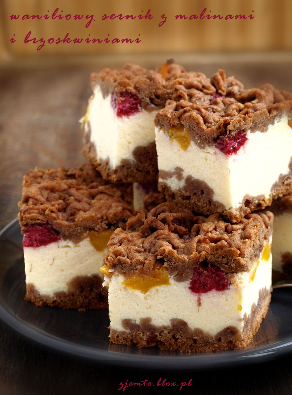 masa serowa, soczyste brzoskwinie i najlepsze o tej porze roku maliny