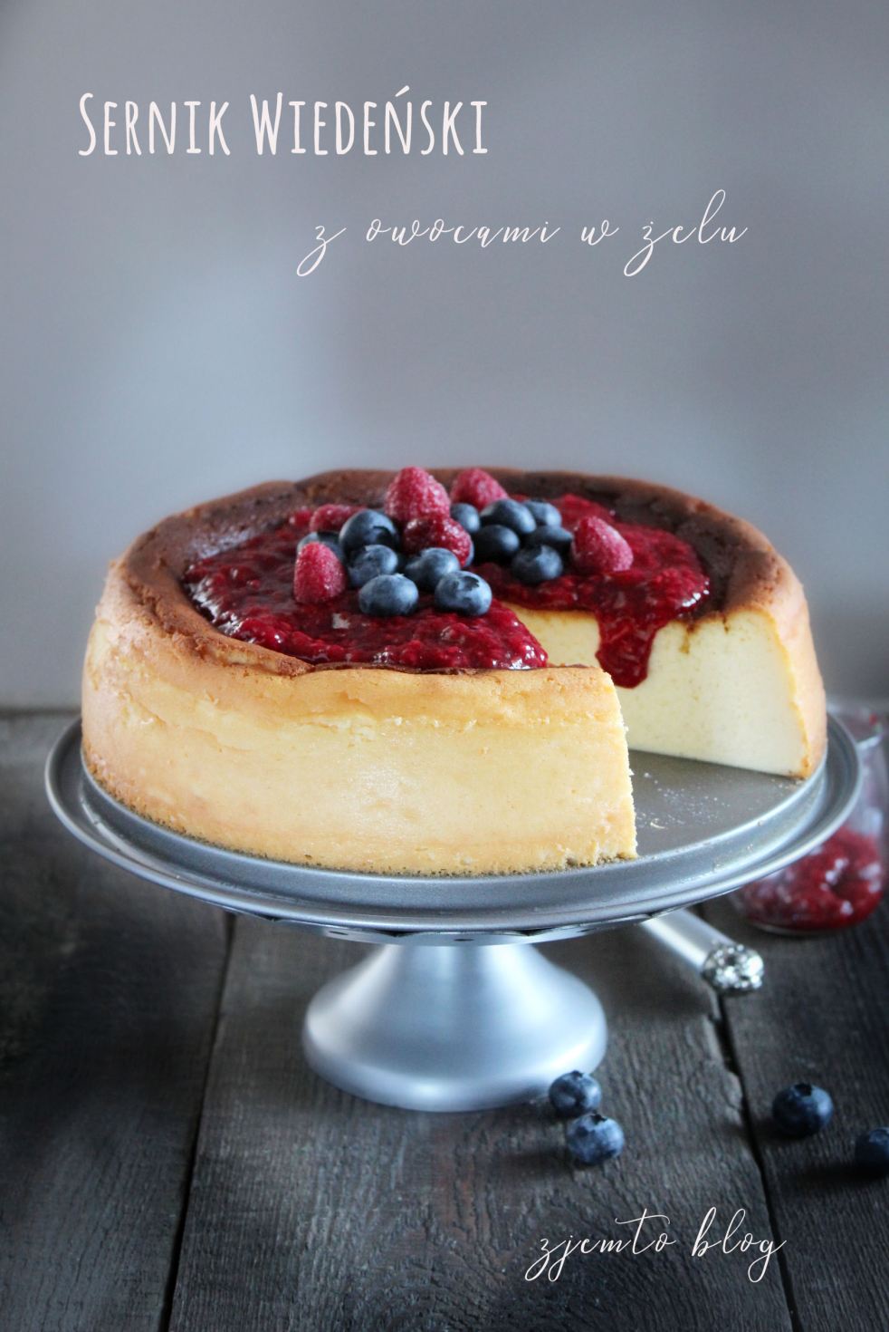 Bardzo klasyczny sernik w zimowej odsłonie, z dodatkiem żelu z mrożonych owoców.