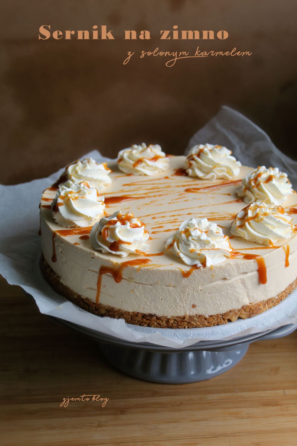 Sernik na zimno dla wielbicieli solonego karmelu. Na bazie sera twarogowego i ubitej śmietanki nadającej przyjemnej konsystencji. Z orzechowym akcentem zarówno w masie jak i w ciasteczkowym spodzie. Ale przede wszystkim z dodatkiem pysznego złoto-bursztynowego karmelu z odrobiną soli.