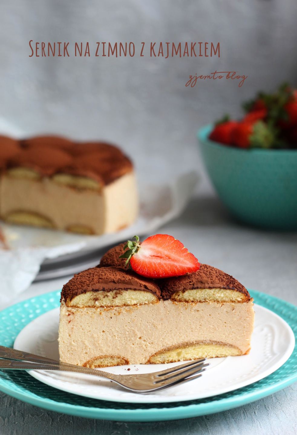 Pyszny, delikatny sernik na zimno o smaku kajmakowego tiramisu. Spód i wierzch sernika to okrągłe biszkopty moczone w kawie i posypka z kakao, a wnętrze to słodka, niemal musowa masa serowa z dodatkiem słodkiego kajmaku. Do takiej wersji sernika świetnym dodatkiem będą świeże owoce sezonowe.