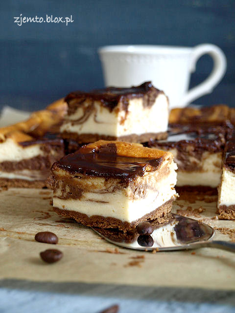 Czekoladowo-waniliowy sernik marmurkowy z nutą kawową na spodzie z herbatników kakaowych. Delikatny i kremowy, choć nie należy do serników puszystych. Swoją konsystencję zawdzięcza dodatkowi mascarpone, a wygląd połączeniu z płynną czekoladą. Bardzo polecam, nawet tym, którzy nie mają wielkiego doświadczenia w pieczeniu serników. Jeśli nie przepadacie za smakiem kawy w deserach, wystarczy pominąć ten dodatek.… Czytaj dalej Sernik marmurkowy