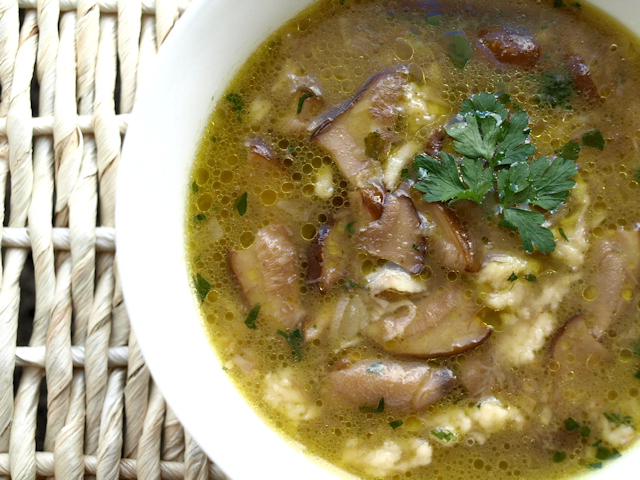 Dziś moja wariacja na temat zupy grzybowej. Po pierwsze bez śmietany, a po drugie z lanymi kluskami. Jest trochę lżejsza od tradycyjnej grzybowej, ale za to baaaardzo aromatyczna i sycąca. Esencja jesieni w garnku. Gorąco polecam! Składniki: ok 1,5 kg świeżych grzybów (u mnie podgrzybki) 1 cebula 3 łyżki masła 1 ząbek czosnku natka pietruszki… Czytaj dalej Grzybowa z kluseczkami lanymi