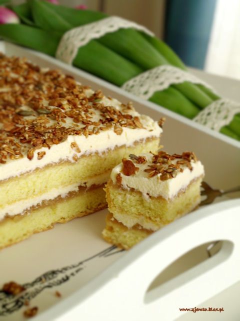To drugi przepis na szarlotkę królewską na moim blogu, a nie wiem czy ostatni, bo ciasta z jabłkami to ulubione wypieki mojej córki. Szarlotka jest lekka, z masą budyniową, na puszystym biszkopcie, dodatkowo nasączonym sokiem jabłkowym. Ciasto wykończyłam domową granolą, która świetnie komponuje się z prażonymi jabłkami i cynamonem. Polecam miłośnikom łagodnych smaków 🙂 Składniki:… Czytaj dalej Szarlotka królewska