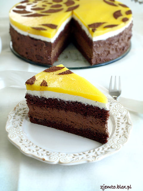 Tort z musem czekoladowym i mango