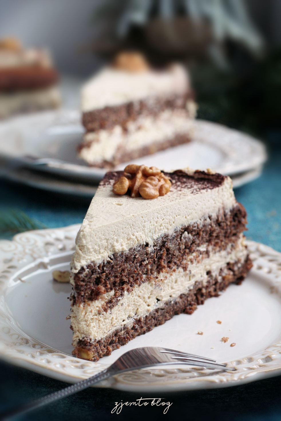 Tort makowy z orzechami i masą kawową